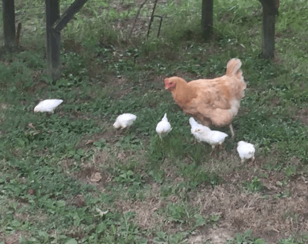• Always grass underfoot. Their protective enclosure is moved often to keep fresh grass available.